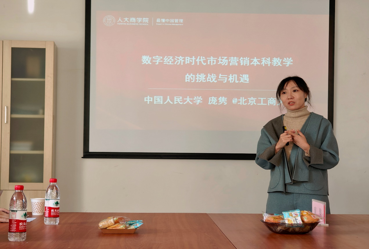 Following her talk, Associate Professor Pang engaged in discussions with Associate Professor Yan Huan (Secretary of the Marketing Branch), Associate Professor Liu Yong (Deputy Director), Associate Professor Chen Libin among others. They explored strategies to address challenges faced by undergraduate marketing education while identifying opportunities for advancement. Participants agreed on accelerating digital transformation within marketing disciplines by adopting advanced teaching methods; enhancing practical components; providing diverse resources; encouraging student innovation; challenging conventional paradigms—all aimed at nurturing independent critical thinking abilities among students.