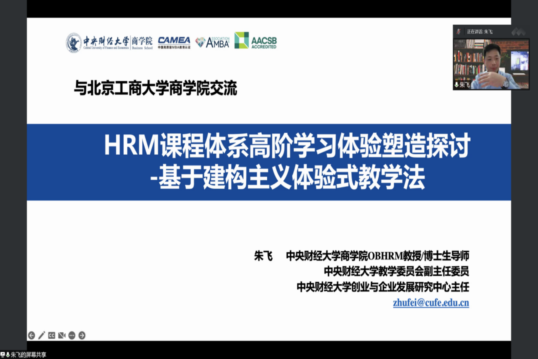 The teaching discussion focused on human resource management teaching, teaching practice and digital transformation of business. Combining with the teaching challenges and intractable problems of HRM curriculum system under the background of new liberal arts, Professor Zhu Fei pointed out the existing problems in teaching, and expounded the basic concepts of teaching design according to the logical conception of "learning experience, high-level learning effect and first-class talent training". Combining the teaching practice of Human Resource Management course, Professor Zhu Fei introduced the "1234 Innovative practice" method based on "learning experience", which included a set of experiential teaching methods of constructivism, two teaching modes of integrated application of online and offline teaching mode and co-creation classroom design, three types of learning experience basis and four classroom elements. The resulting structured learning experience is helpful for students to achieve higher learning results and for colleges to achieve the goal of talent training.