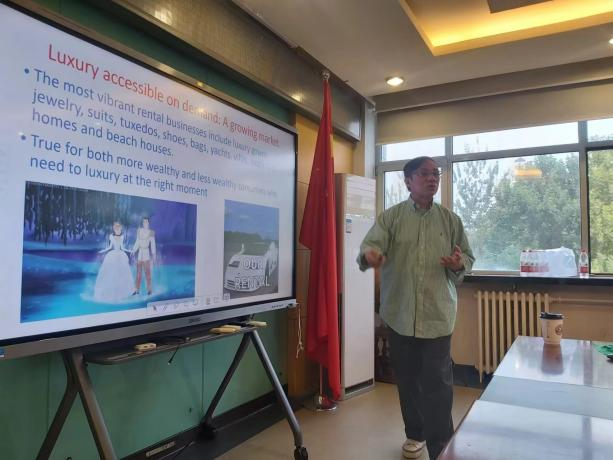On the afternoon of October 17, 2023, Professor Wang Chenglu from the University of New Haven Business School delivered a lecture titled "Profiling Transumers: The Impact of Mindsets on Rentership vs. Ownership Consumption." This event was hosted by Liu Yong, Director of the Marketing Department. Faculty members and graduate students in business management attended this engaging lecture. Director Liu welcomed Professor Wang warmly and briefly highlighted his academic achievements.