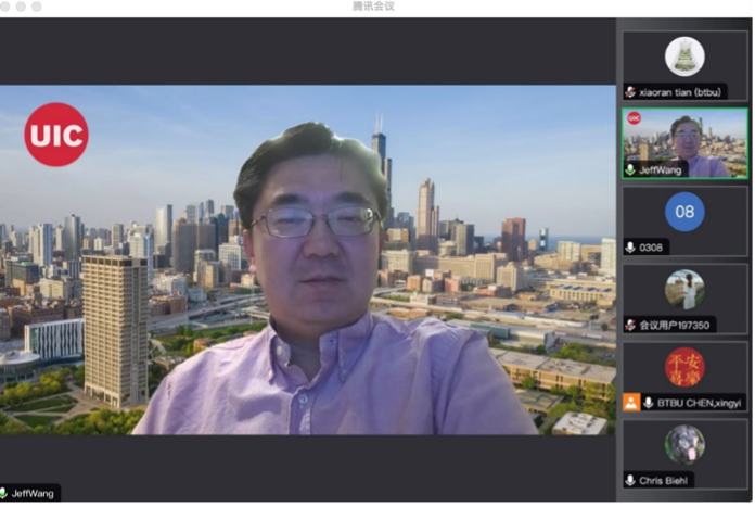 Then, Chistopher Biehl made a detailed introduction to the learning environment and safety measures of the University of Illinois at Chicago. He encouraged students to take part in local cultural festivals, make friends and enjoy the local culture in their spare time. Jeff Wang made a summary of the main content of the presentation and patiently answered all the questions raised by the students on the exchange activity.