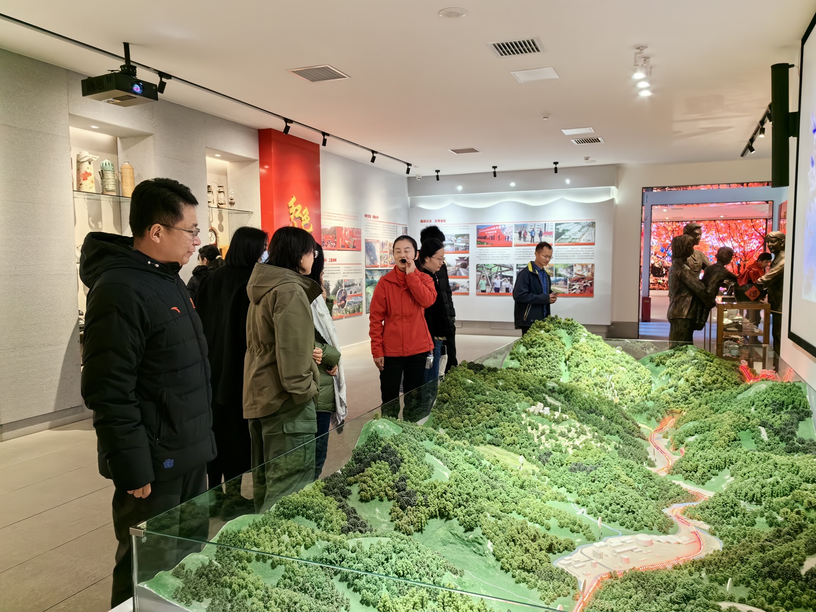 First, we walked into the red basket spirit memorial. The exhibition structure of the memorial hall takes the core of the "red pannier spirit" - "resolutely listen to the Party, firmly follow the party, adhere to the people" as the main line, and reproduces the scene of Wang Yanxiang, the initiator of the pannier store, leading party members and workers to walk through the mountains and carry the pannier for people's delivery; Through the four plates of "Red Memory", "Red inheritance", "Red Mission" and "Beautiful Vision", the birth process of the "red basket spirit" is restored in the form of pictures, documents, objects and images, and the party organization of Huangshan Dian Village is carrying forward the "red basket spirit", leading the industrial transformation, overcoming difficulties, forging ahead, and achieving innovative development.