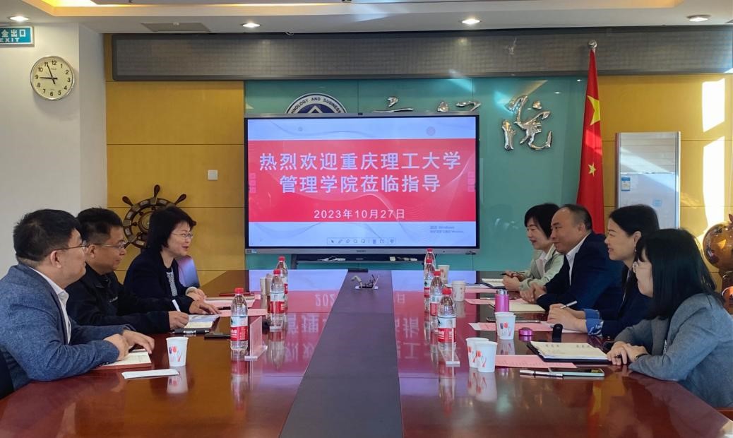 On the morning of October 27, Zou Xia, Secretary of the Party Committee at the School of Management of Chongqing University of Technology, along with Vice President Dai Ying and Vice Presidents Sun Jinhua and Sun Lilu, visited our institution. Dean He Yurun from Business School chaired the meeting, which also included Party Secretary Fu Shilun and Vice President Zhang Weihua for a research exchange.