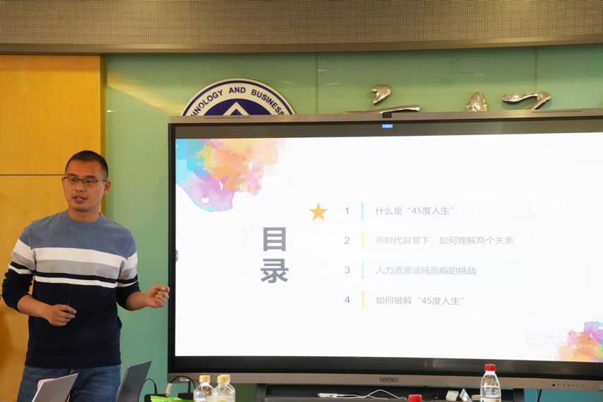 Gao Huimeng's topic centered around 'Management Insights Inspired by Life’s “45 Degrees.”' After graduation from university where he focused on consulting firms including Alibaba—he has dedicated himself to organizational talent development alongside compensation strategies. His discussion primarily revolved around characteristics inherent to post-90s and post-00s professional cohorts while addressing personal decision-making challenges associated with life’s pivotal moments at age 45. He advised students that regardless of their chosen paths for self-development they should aspire to be lifelong learners who embrace positive diversity in values alongside seeking spiritual fulfillment.