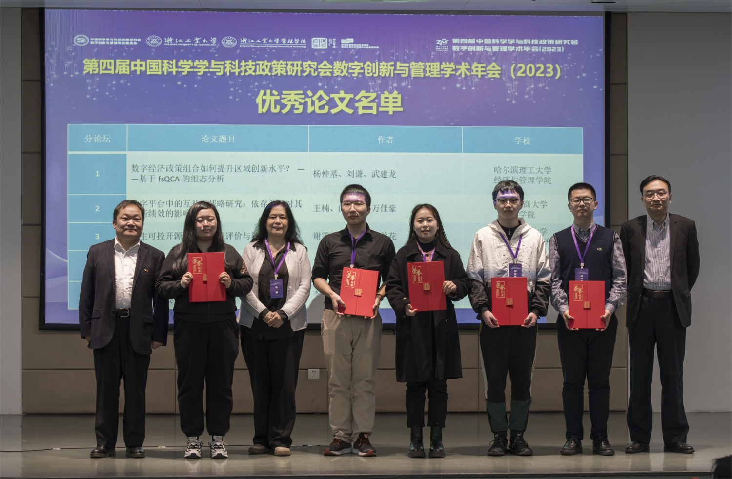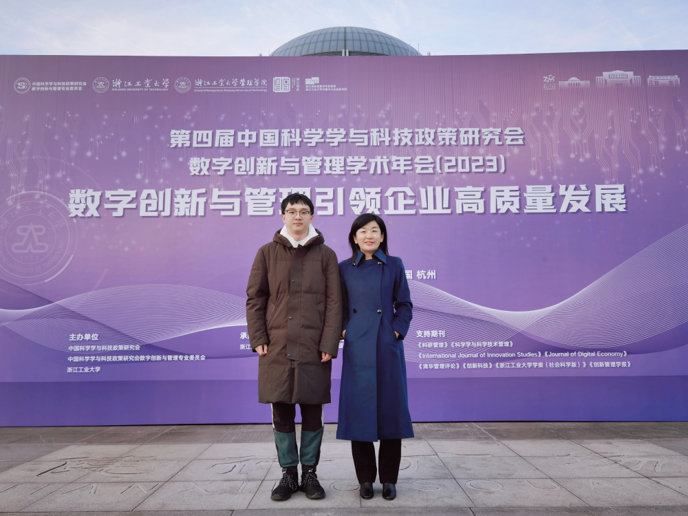 On December 2, 2023, the "Fourth Annual Conference on Digital Innovation and Management" organized by the Professional Committee of Digital Innovation and Management under the China Research Society of Science and Technology Policy was held at the School of Management, Zhejiang University of Technology. The conference theme was "Digital Innovation and Management Leading High-Quality Development in Enterprises." Esteemed domestic scholars and industry experts were invited to engage in discussions on critical topics such as the deep integration of digital economy with real economy, high-quality development of SMEs through digital empowerment, innovation within digital industrial clusters, new development patterns driven by digital technology, green innovation facilitated by digital means, scenario-driven innovation for SMEs' high-quality growth. Professor Wang Nan from Business School served as moderator for a sub-forum and attended alongside graduate student Min Yuhan to present their findings.