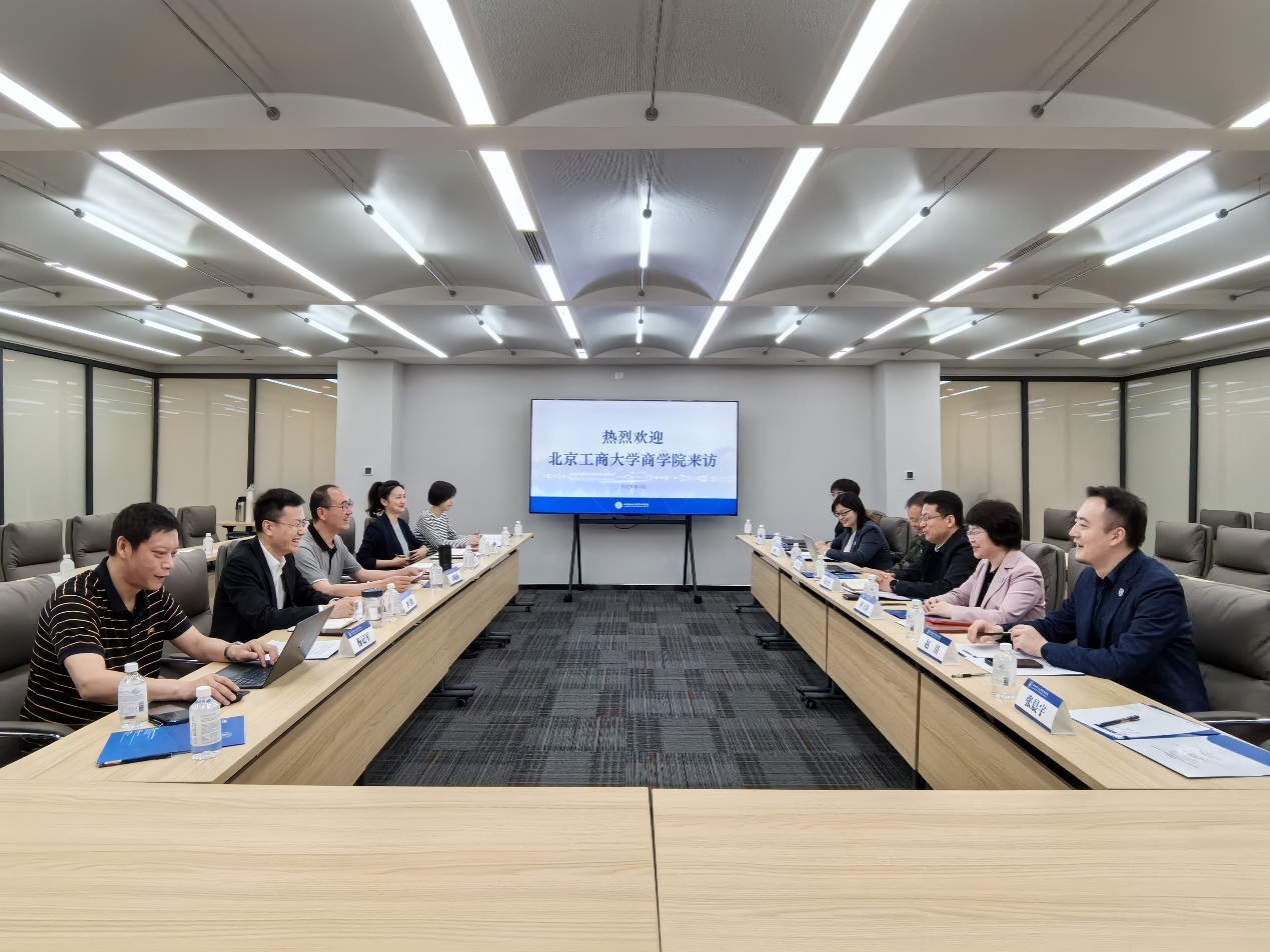 At the School of Business Administration of Southwest University of Finance and Economics, Dean Wang Jue, Deputy Secretary of the Party Committee, Deputy Secretary of the Discipline Inspection Commission Hu Guoping, and Director of the Office Ye Lingyan received our visit. Dean Wang Jue provided a detailed introduction to the basic situation, professional settings, faculty and student scale, national-level courses, and educational teaching achievements of the School of Business Administration. He also emphasized the innovative "1+7+7+1" work framework in academic construction. Both sides conducted in-depth exchanges on postgraduate enrollment and talent cultivation, international exchanges and business international accreditation, faculty team construction, academic construction, business digital transformation, and digital governance.
