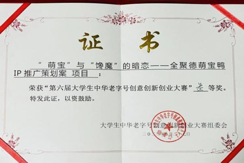 On August 27, the final of the 6th Chinese Time-honored Brand of Creativity Innovation and Entrepreneurship Competition for College Students was held in Beijing. Our project A Secret Love Between "Cute Baby" and "Greedy" behaved excellently and won the third prize in the final. (Team members: Li Minghao, Xu Guangliang, Liu Miaomiao, Chang Mei; Instructors: Zhang Jingyun, Li Dong)