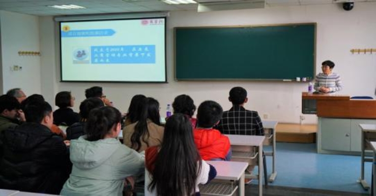 He Hui, a teacher from the Department of Human Resources, introduced the majors in the Business School, graduates' employment, and students' entrepreneurship. She also talked about the development of innovation and entrepreneurship education of the economics and management majors in BTBU.