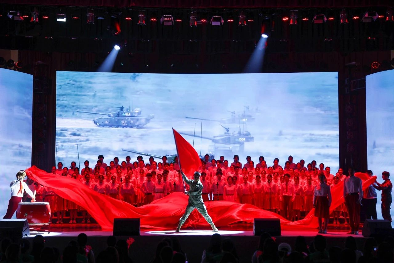 With the powerful beats of drums and the red flags flying high, the Business School students take the stage with full enthusiasm and pride! Listen—the resounding voices sing of the students' fighting spirit, their fists clenched in unity, forging ahead together to achieve brilliance. The song "Victory Song" resonates with strong, inspiring notes, reflecting the belief in youthful vigor and determination to conquer new frontiers and succeed in the new era! Look—the veteran students in camouflage and the young scholars full of ambition! Growing up under the red flag, with the five-pointed star engraved on their chests, the red of the Business School represents China’s red!