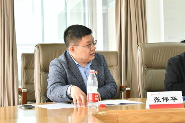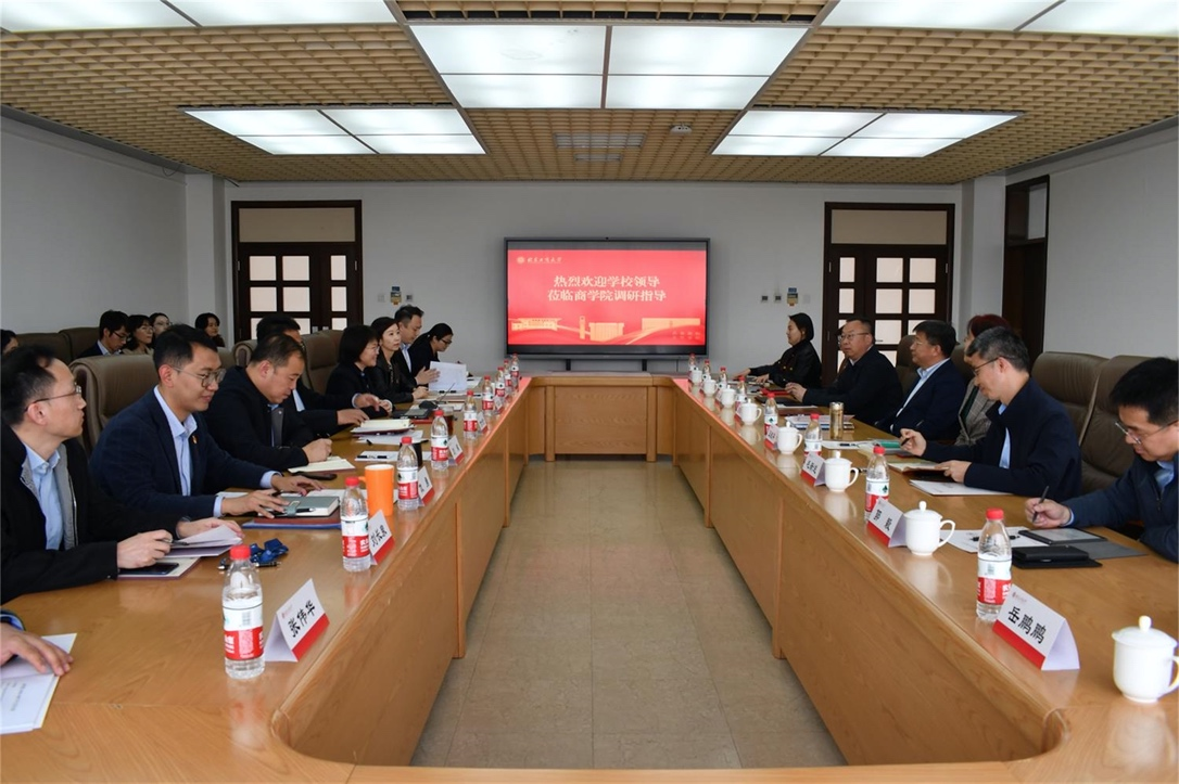 On April 1, Guo Jianhua, Deputy Secretary of the Party Committee and President of the university, led a team to the Business School for research and guidance, discussing aspects such as discipline construction, scientific research, and talent training with representatives of the faculty. Wang Xiaohua, Director of the Party and Government Office, Ji Tao, Director of the Development Planning Department, Mao Xinshu, Dean of the Graduate School and Director of the Discipline Construction Office, Gao Lihua, Director of the Personnel Department, Zhang Yang, Deputy Director of the Party and Government Office, and Yue Pengpeng, Deputy Director of the Humanities and Social Sciences Office, participated in the research. Guo Yi, Director of the Economic Management Department, the entire leadership team of the Business School, and representatives of the faculty attended the meeting. The discussion was chaired by Fu Shilun, Secretary of the Party Committee of the Business School.