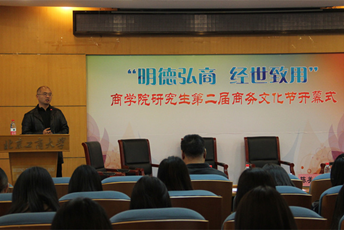 The Second Business Cultural Festival for graduate students of the Business School had its opening ceremony on the afternoon of October 25th. Yang Haoxiong, Associate Dean of the Business School, Fan Jiangtao, Deputy secretary of the Party Committee, and four special guests were in attendance.