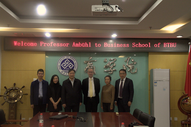 On November 25, 2019, Professor Michael Ambuehl, Dean of the School of Management Engineering and Economics of the Swiss Federal Institute of Technology in Zurich, and his delegation visited the Business School of BTBU. Before the meeting, Dean Michael Ambuehl gave a lecture for MBA and IMBA students of the Business School, which was warmly received and widely praised.