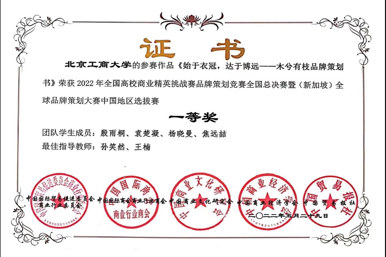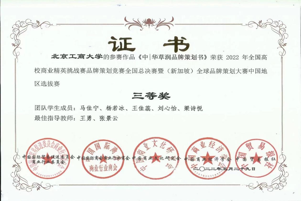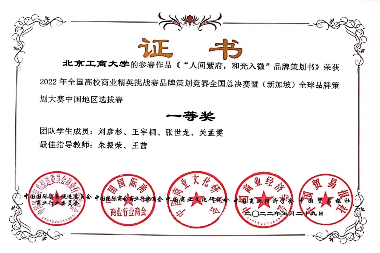 On May 28 and 29, 2022, the National Finals of the 2022 National University Business Elite Challenge Brand Planning Competition and the (Singapore) Global Brand Planning Competition in China were successfully held online by the Commercial Sub-council of the China Council for the Promotion of International Trade. The competition is a national first-level discipline competition for college students, and it is also a Class A discipline competition recognized by our university.
