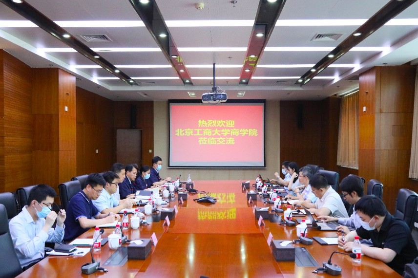 On the afternoon of July 28, 2022, Prof. Mao Xinshu, Dean of Business School of Beijing Technology and Business University (BTBU), led a team to visit Beijing Changan Automobile Co. Ltd. to investigate the needs of enterprises and expand employment channels for graduates. A number of leaders and teachers of the Business School and representatives from China South Industries Group Corporation (CSGC), including Sun Zhigang, deputy director of the Finance Department, Kong Jian and Yu Hui, deputy directors of the Management Accounting Division, Ming Qiang, secretary and general manager of Beijing Changan Automobile Co. Ltd., and Chen Dan, manager of the Finance Department, attended the meeting.