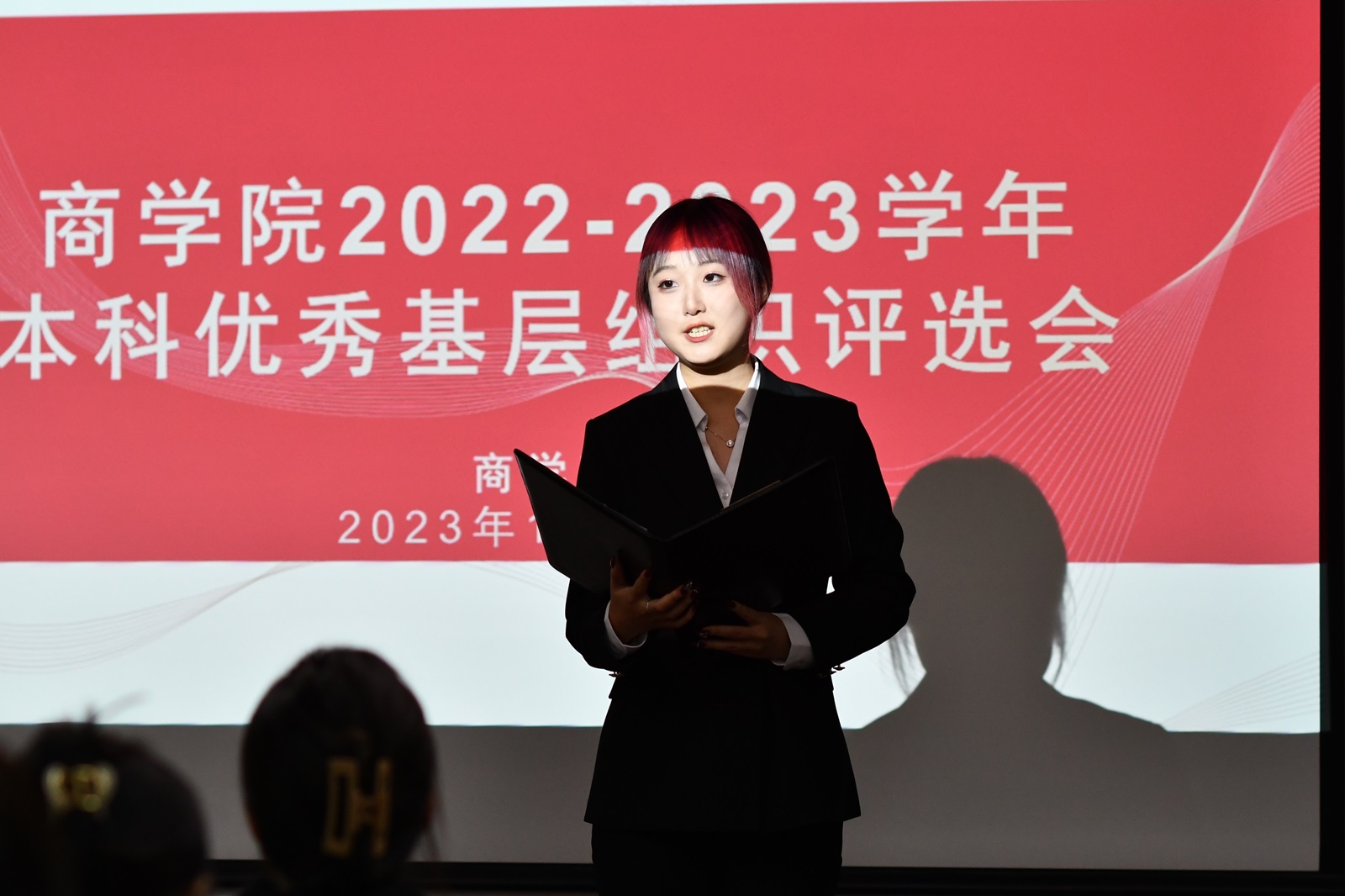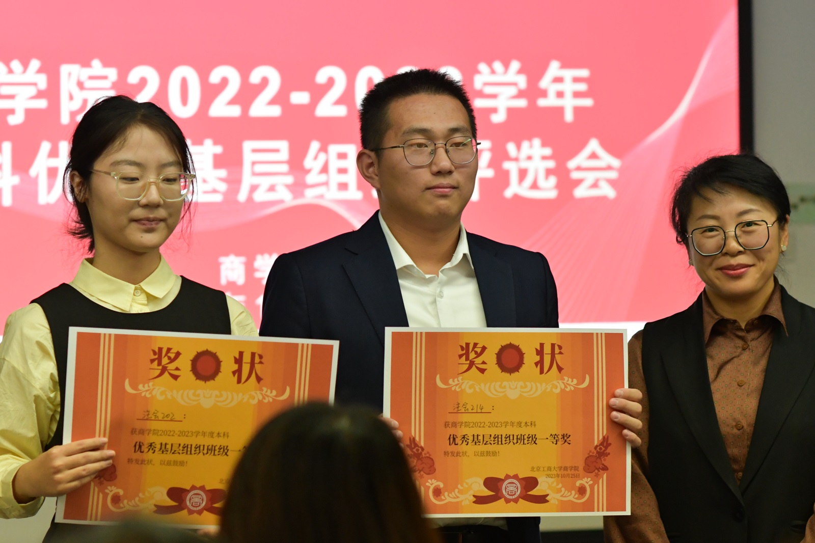 To advance the establishment of an academic culture, enhance communication and mutual learning among grassroots organizations in the college, promote a spirit of vitality and progress, and foster a conducive environment for growth and learning, a review meeting for outstanding grassroots organizations representing undergraduate students from Business School for the 2022-2023 academic year was held on October 25 in Room 106 of Business School Building in Liangxiang District. The meeting included Zhang Qian, Deputy Secretary of the Party Committee; Zhao Jie, Secretary of the Youth League Committee; counselors Guo Jianrong, Wang Luyang, Guo Xinyuan, Zhao Chunyan, Wang Linfei, Yan Huiran; new counselors Liu Xinchen, Wei Chang, Wang Kuo; all members of the presidium; as well as class leaders who served as judges.