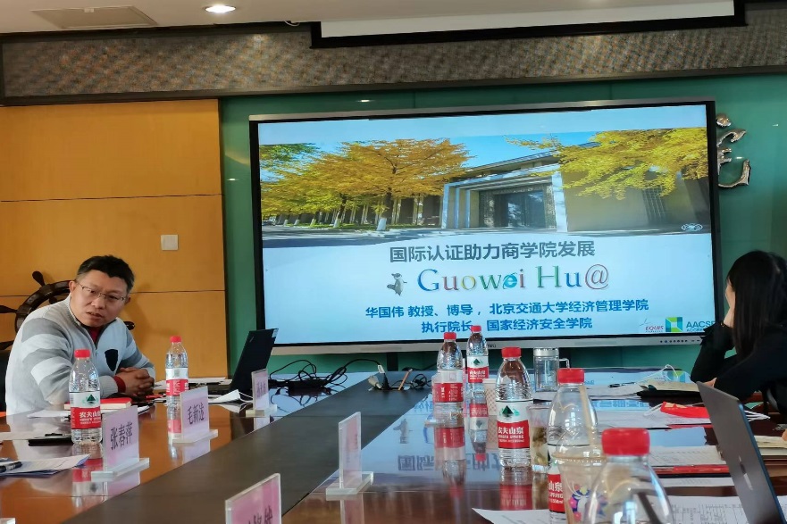 On the afternoon of March 3, Hua Guowei, executive dean of the National Academy of Economic Security of the Beijing Jiaotong University and former associate dean of the School of Economics and Management, Beijing Jiaotong University was invited to the school to give guidance on the international accreditation of AMBA&BGA, EQUIS, etc.