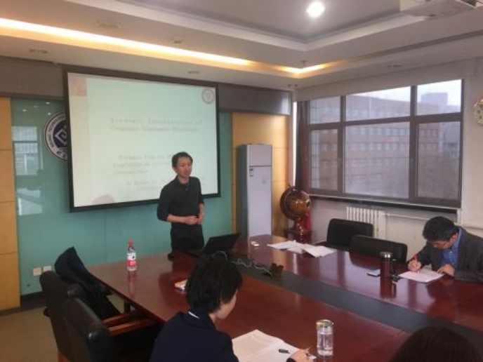 On 30 March 2018, Dr. Haihao Ross Lu, Associate Professor of the School of Accounting and Finance from the University of Waterloo, gave an academic report to the faculty and students from the Department of Accounting after being extended an invitation.
