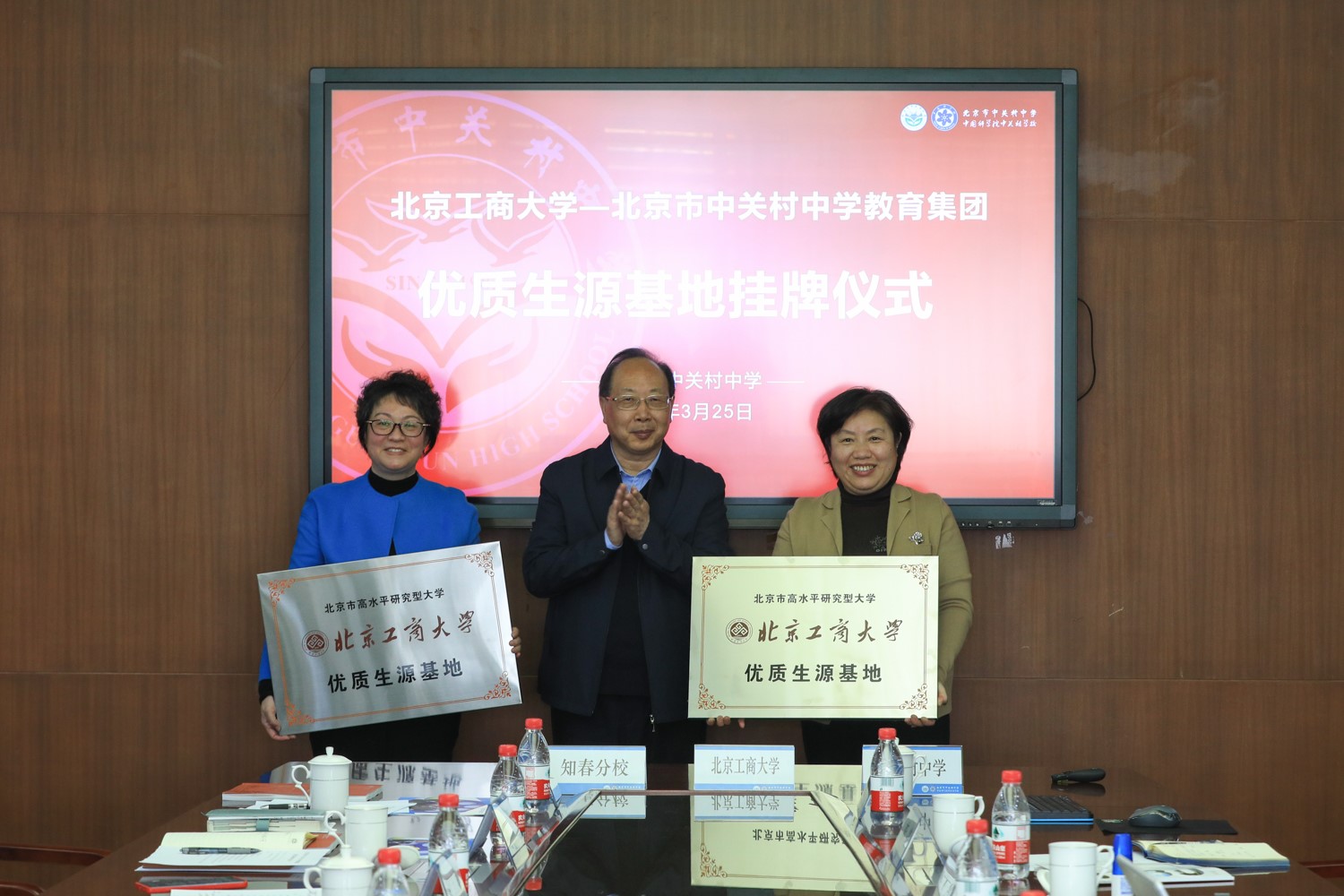 Subsequently, our university signed the "High-Quality Student Base Cooperation Agreement" with Zhongguancun Middle School and its Zhichun branch, and held a "High-Quality Student Base" plaque ceremony.