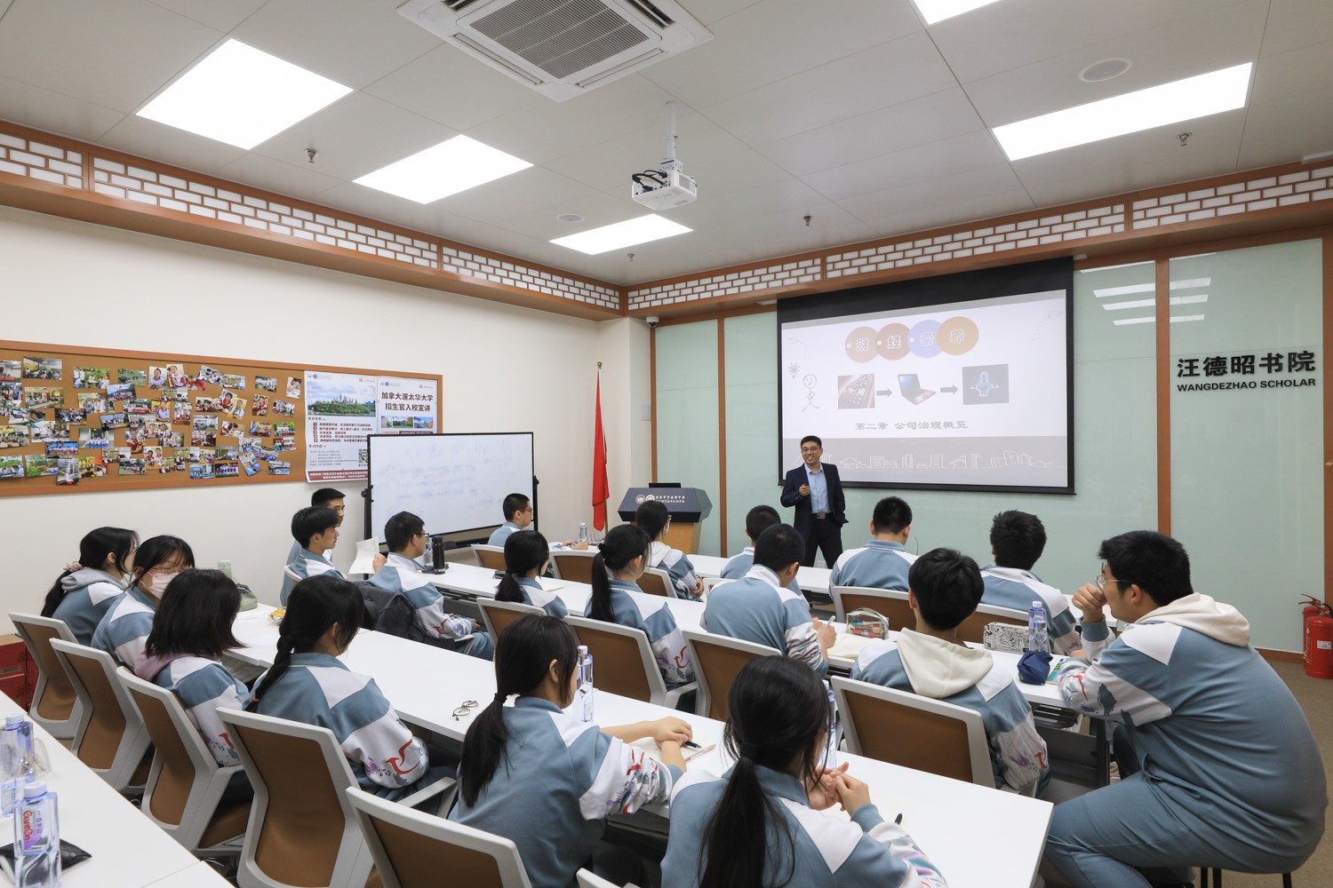 After the ceremony, both sides went to Wang Dezhao Academy to listen to a class, to understand the teaching situation of "Financial Literacy" taught by teachers from the Business School of Beijing Technology and Business University. They also had in-depth discussions on the intention to continue offering courses related to business career development and vocational education guidance, reaching a broad consensus on cooperation.