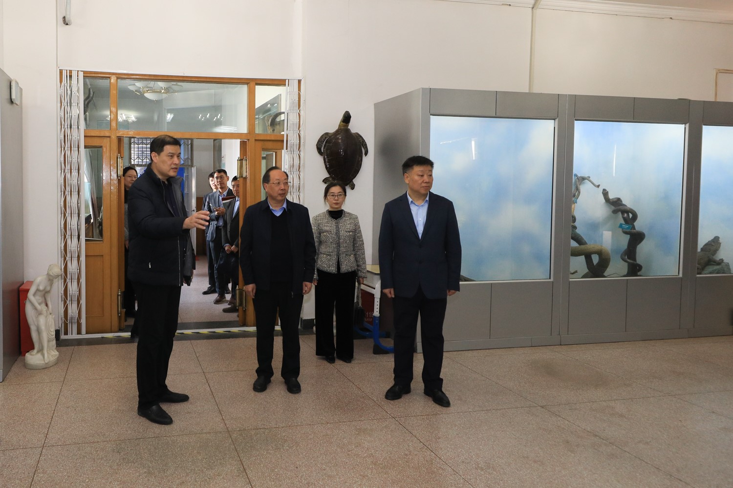 Before the meeting, accompanied by comrades Qi Jianxin and Su Shu, Secretary Huang Xiankai and his party visited the campus, museum, and history museum of Zhongguancun Middle School.