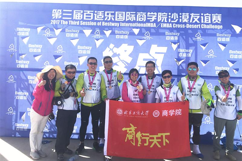 On May 28 until May 31, the Cross-Desert Challenge was held at Wuhai Lake and Ulan Buh Desert in Inner Mongolia. Representatives from universities and enterprises from 35 provinces and cities of mainland China, Hong Kong, Taiwan, Australia, and the UK participated in the competition with nearly 900 participants from 64 teams. Led by Wang Guoshun, Dean of BTBU Business School, and Sun Shuo, a MBA Center teacher, the BTBU team participated in the competition and won the highest award— the Hu Yang Award— with an excellent ranking of 18th place.