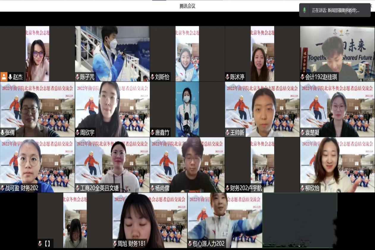 At the meeting, Zhao Jie briefly introduced the volunteers for the Winter Olympics and Paralympics of the Business School, and expressed her gratitude for their hard work. Then the volunteers shared their experiences of the volunteer service.