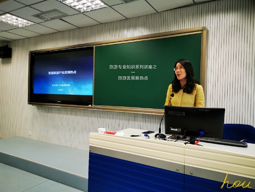 In order to help students deepen their understanding of the major so that everyone can enter the professional field as soon as possible and carry out relevant study and research, the Tourism Management major of the Business School has planned a series of lectures on professional knowledge expansion. Dr. Wu Liyun from the Chinese Culture and Tourism Industry Research Institute of Beijing International Studies University, as the first invited expert of the series of lectures, gave a wonderful speech on New Hotspots of Tourism Development for the students and communicated with them.