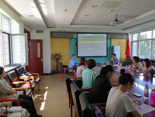 On May 22, the Department of Marketing of BTBU invited Dr. Han Shujie, Chairman of Weiming Crowd Innovation Company, founder and CEO of Weihe Space, and President of Tong Ya Academy, to give a lecture entitled “Business Model in the Internet Era” to postgraduate students of the Business School. Associate Professor Wang Yong hosted the lecture, while Professor Liu Wenzang, Associate Professor Zhu Rong, Wu Xiaoyu, Zheng Mingfu, Sun Baihui and other teachers of BTBU participated in the exchange and discussion.