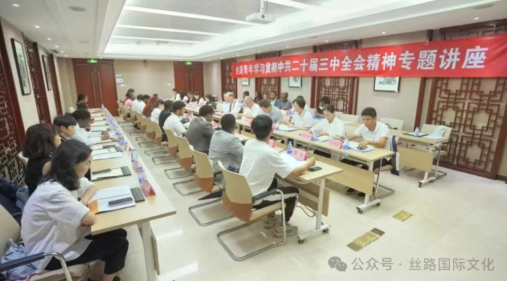 The 12th session of the CPPCC national committee of the society and legal committee in, deputy director of the silk road, international think-tank exchange center, director of the expert committee, the CPPCC national committee, the silk road international think-tank exchange center, a senior researcher at Xu Jin, the silk road youth BBS, vice President and secretary general, the silk road international think-tank exchange center vice director and secretary general dong-ping Yang, with youth representatives from 17 "Belt and Road" countries, talk about learning of the third plenary session of the communist party of twenty spirit. Zhang Hongxia, Deputy Secretary-General of the Silk Road Youth Forum, presided over the lecture.