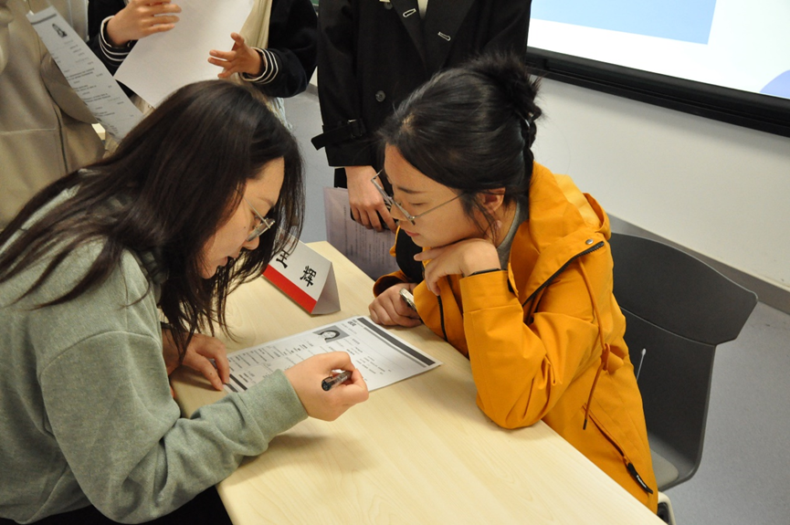 之后校友嘉宾们认真耐心地为同学们进行了一对一简历诊断。通过一对一交流,校友们对同学们进行了职业目标调整、实习规划、职业技能证书备考、实际工作场景中的相关问题处理等具体问题进行了指导。