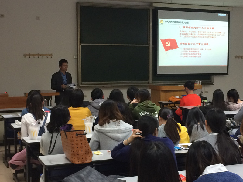 11月8日,台湾女优 党委书记毛新述分别给台湾女优 全体教职工、本科生党员和研究生党员讲党课,宣讲党的十九大精神。台湾女优 全体教职工、本科生党员和研究生党员共计500余人参加学习。