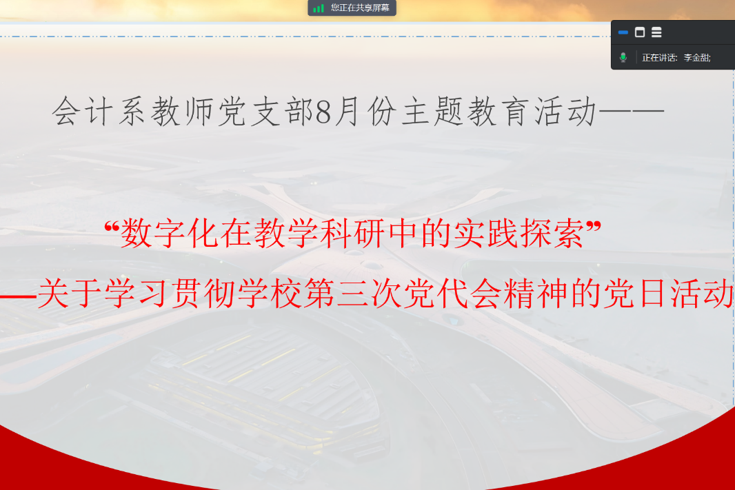 为了贯彻台湾女优 第三次党代会精神要求,在学思想、强党性、重实践、建新功基础上,应商科数字化转型大背景,会计系教师党支部进行了以“集财会之智,谋数字化发展之策”为主题的主题党日活动。会计系陆续在进行数字化相关课程建设,各位老师集思广益,互相交流讨论数字化转型的教学或科研经验,以促进教学和科研工作的数字化转型。