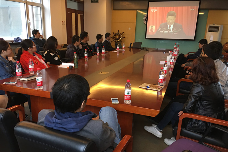 党委书记带领院领导班子、党委委员、教工党支部书记、支部委员及学生党员150余人分别在综合楼501和科研楼104集中收看党的十九大的开幕式,认真聆听习近平总书记所作的十九大报告。没有课程安排的其他师生党员及党外人士分别通过电视、网络等途径收看了十九大开幕式。