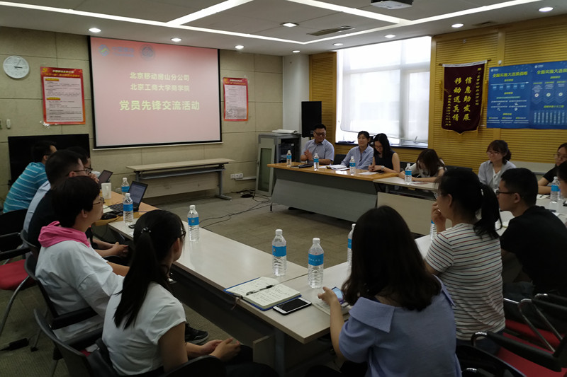 党委副书记樊江涛、营销系党员教师洪莹、团委书记李艳春及十余名学生党员赴中国移动房山分公司开展红色“1+1”共建活动。