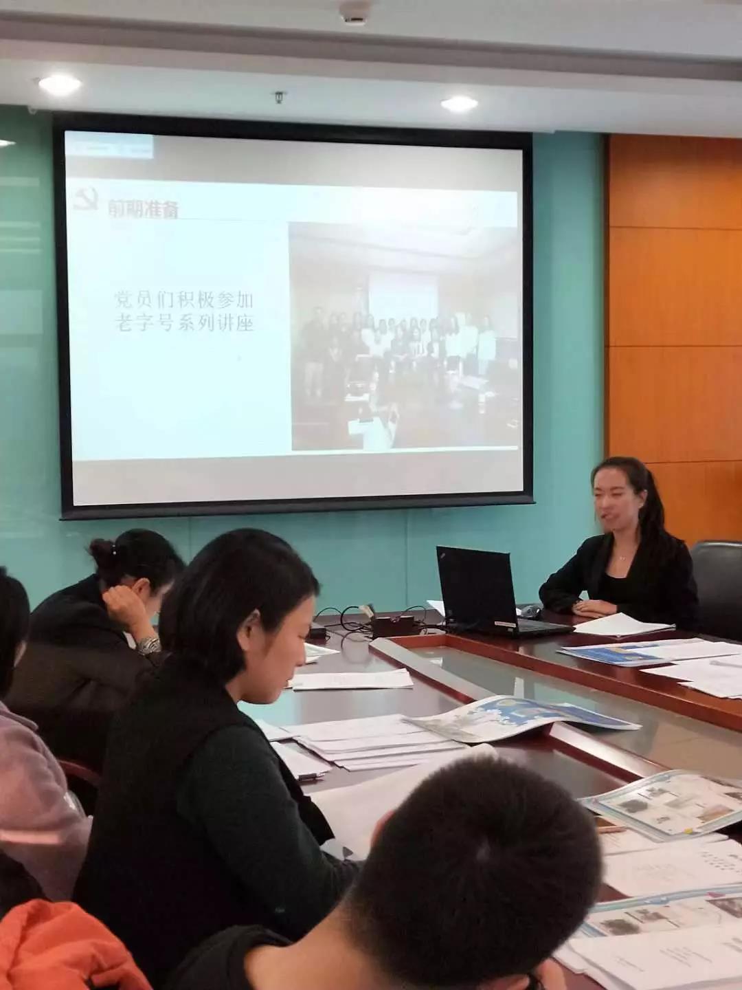 教授张景云老师为该支部党员召开了两次以当代老字号品牌经营发展现状为主题的知识讲座。讲座极大地激发了该支部党员们的继续研究的兴趣。随后,支部成员便积极与聚德华天控股有限公司的党支部书记刘健取得联系,在暑期党支委们更是多次前往聚德华天总公司,与刘总就两支部铸魂工程事宜进行商讨。