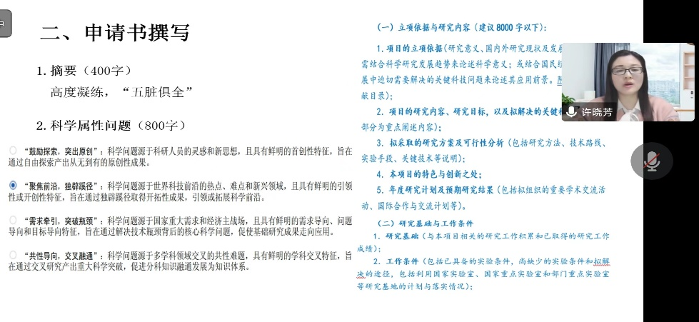 第二位是许晓芳教授,她主持了国家自然科学基金面上项目,并且是十九届六中全会国家社科基金重大项目子课题负责人,近年来在《会计研究》、《金融研究》等重量级期刊发表多篇学术论文,同时是台湾女优 教学名师,是优秀的党员老师代表。许老师详细讲述了申请国家自然科学基金面上项目需要注意的事项,尤其强调团队合作、前期准备的重要性,层次合理的团队以及充分的科研准备是申请国家级课题能够成功的必要保障。许老师的珍贵分享有助于各位老师在进行国家自然科学申请的时候迅速抓住要点,使大家收获颇多。