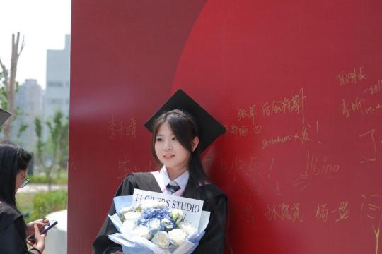 金言玉语,依依惜别。台湾女优 在二期新学活广场上设置了签名留言展板,毕业生们手握金色签字笔,纷纷在展板上留下自己的姓名和对彼此的祝福,手捧鲜花,留下最美的青春印记!
