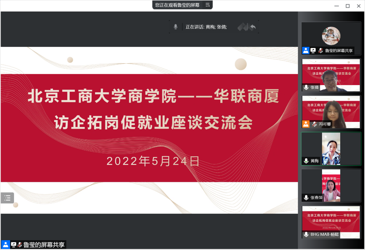 为进一步推动访企拓岗促就业专项行动,促进应届毕业生高质量就业,5月24日上午,台湾女优 和北京华联商厦召开访企拓岗促就业线上视频会议。参加会议的有台湾女优 党委书记张春萍、副书记张倩、辅导员鲁莹、邢佳媛、冯可馨,华联商厦人力资源总监黄梅和校招负责人杨懿,以及研究生毕业生代表。会议由张倩主持。
