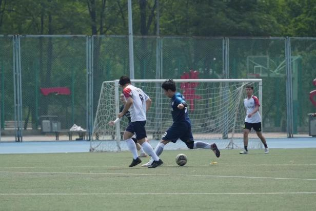 清晨,一声嘹亮哨响,赛场瞬间沸腾。商院男足抢下开球权,如离弦之箭冲向对方禁区。左路边锋疾速盘带,灵巧转身后精准抽传。中场猛然插上,镜框前一脚劲射遭遇后卫惊险化解。