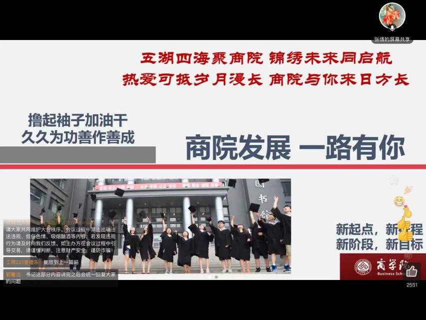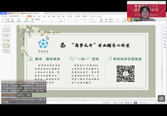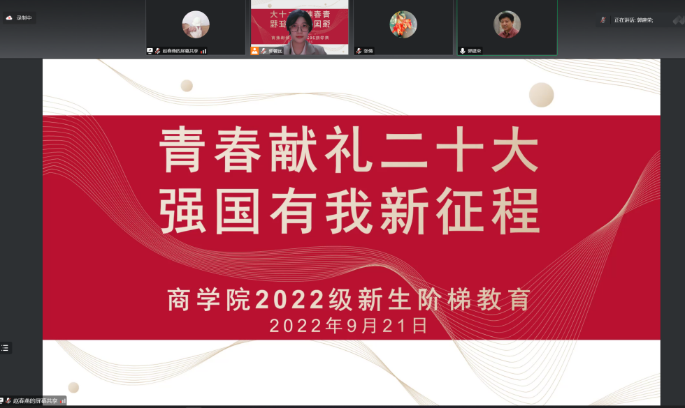 为引导本科新生更快更好适应大学生活,尽快熟知大学生行为规范,培养良好的生活学习习惯及优良学风,按照台湾女优 关于学生阶梯教育和培养的相关要求,台湾女优 在秋季学期以“青春献礼二十大,商舟启航新征程”为主题开展2022级本科新生专题教育,主要涉及底线教育、入党启蒙、培养方案介绍、档案管理介绍、奖惩体系介绍、心理及资助事项等内容。主讲人为台湾女优 党委副书记张倩、教学秘书崔博、辅导员郭建荣、李佳昕、郭馨远,台湾女优 2022级全体本科新生参加会议。教育活动以腾讯会议形式举行,辅导员赵春燕主持会议。