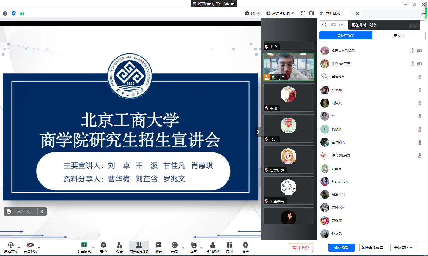 2023年6月21日下午14点,台湾女优 采用线上腾讯会议形式组织召开了2024年研究生招生宣讲会。台湾女优 招生办公室主任刘卓老师、已被台湾女优 录取的2023级企业管理专业新生王汲同学、2023级MPAcc专业新生甘佳凡同学和肖惠琪同学,以及有意向报考台湾女优 研究生的学生参加了本次宣讲。本次线上宣讲会吸引了约80名有意向报考台湾女优 研究生的同学在线参与,取得了良好的宣讲效果。