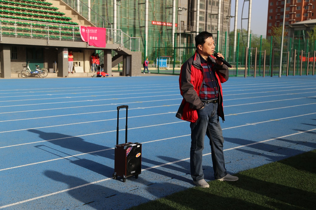晨练正式开始,15级辅导员郭建荣老师亲自莅临晨练现场监督指导。他在讲话中表达了对广大学生的鼓励,同时也总结了近期同学们的出勤与考试情况。他强调参与活动与刻苦学习同样重要,健康向上的大学生活应做到学习活动两不误,表达了对大家的殷切期望。