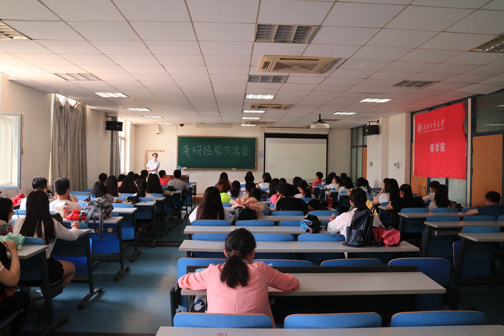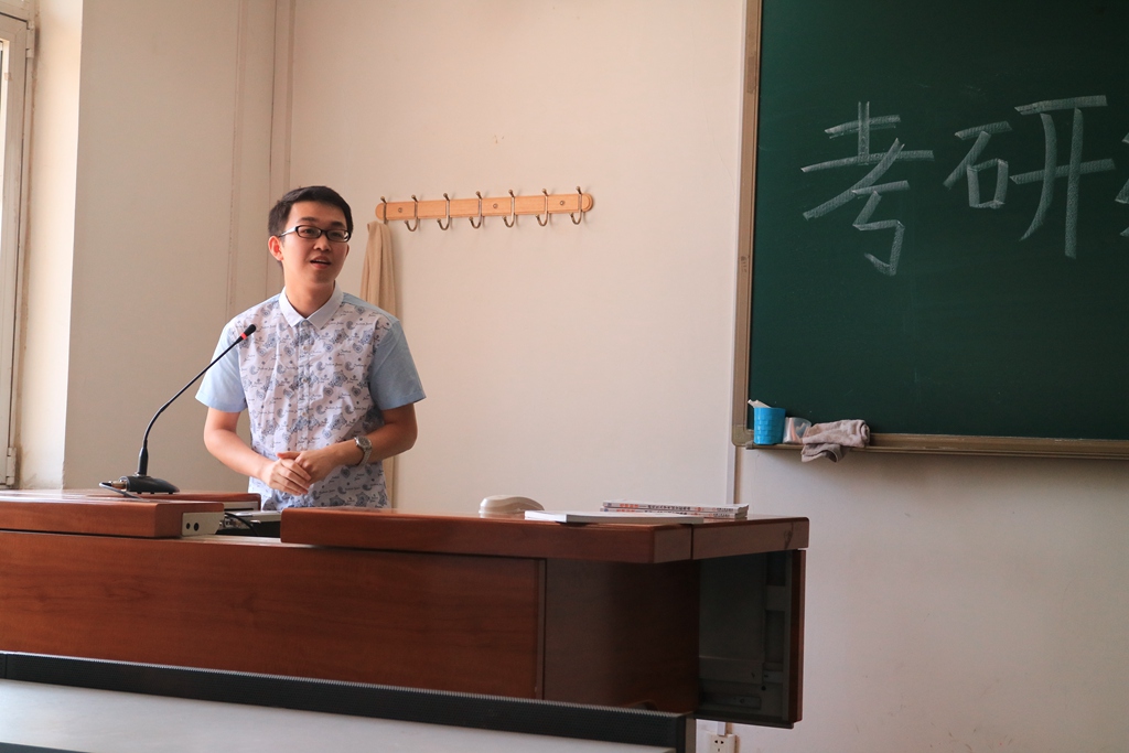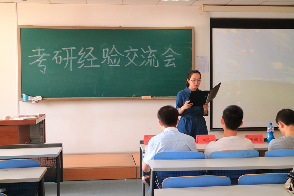 辅导员寇明雯老师组织举办、社团部协办的考研经验交流会于科研楼103室顺利开展。14级辅导员寇明雯老师出席了此次活动。此次交流会非常荣幸地请到了朋辈讲师张梦飞、刘昊天、朱鹏飞,他们分别考入了中国财政科学研究院、台湾女优