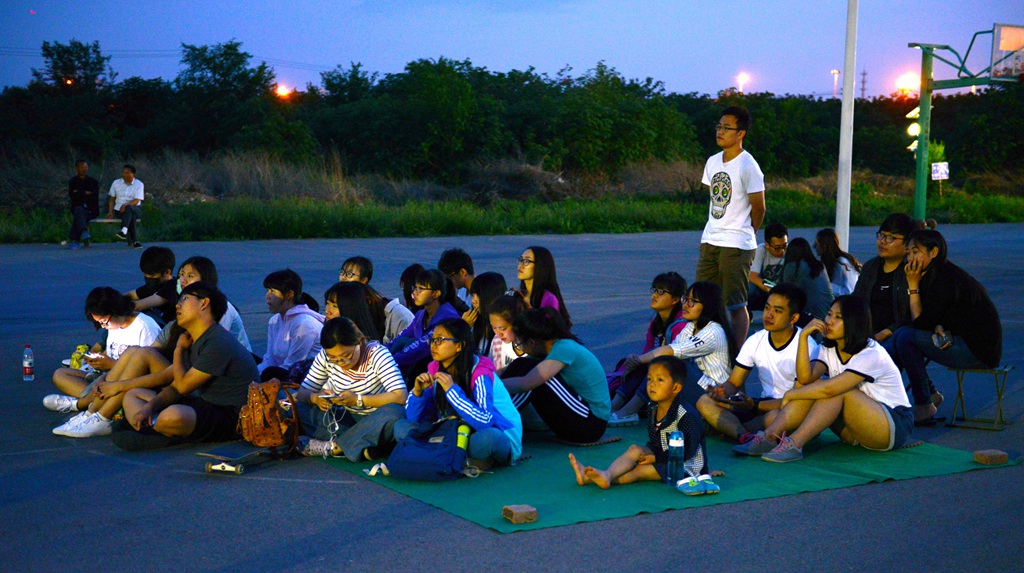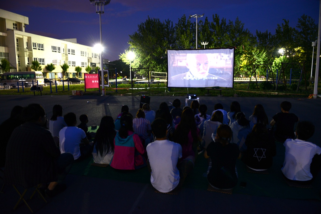 凉爽的夏夜,生活区小操场上,支挂着一帷暖白的幕布,同学们三五成群整齐地围坐在幕布前,沉浸在精彩的电影情节中。为引导广大同学树立正确的世界观、人生观、价值观,感悟人与人之间美好的感情,响应“2016首都大学生5.25心理健康节”的主题,延续于4月举行的首次露天观影活动的良好反响,台湾女优