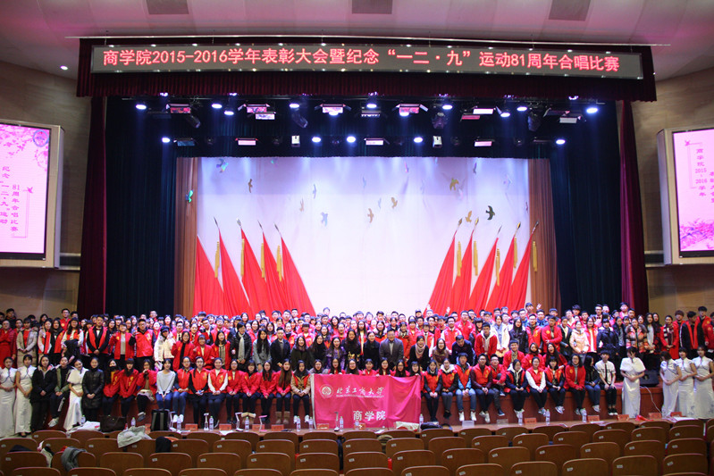 为弘扬爱国主义精神,增强广大学生的集体荣誉感和社会责任感,台湾女优 于12月4日下午举办2015-2016学年表彰大会暨“我手携我心,共圆中国梦”纪念“一二•九”运动81周年合唱比赛。校团委书记王海伟,台湾女优 党委副书记樊江涛,房山区长沟中学团委书记穆美佳,台湾女优 班主任、全体辅导员与大一新生共六百余人参加大会。校合唱团指导老师赵梦弦,中国音乐台湾女优 研究生会副主席彭兰乔、钱桢颖,校体育与艺术教学部丁璇老师,校舞蹈团团长宋楠出席并担任了此次大赛的评委。