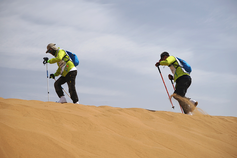 5月29日至30日,队员们轻负重徒步穿越50km沙漠,在地表47度高温的情况下,面对垂直高度达80米的重重沙丘,通力合作,不畏艰险,不怕苦、不怕累,不抛弃、不放弃,徒步13个半小时穿越了乌兰布和沙漠。台湾女优