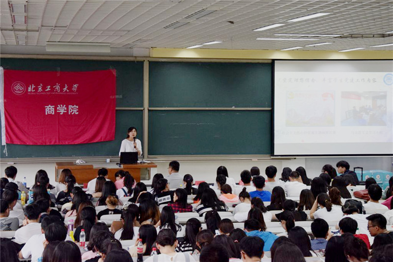 接下来,学生会主席靳子豪进行了发言。他坦言自已从刚入校的懵懂学生快速转变为可以独当一面的负责人,既丰富了生活,又获得了很多宝贵的知识和经验。并希望学生干部们不断用自己的拼搏上进诠释青春的力量,用成果来证明商院第一我最红这句嘹亮的口号。