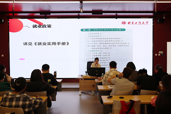 辅导员程钰简要介绍2024年最新国家就业政策,以及毕业去向登记与网上签约平台的操作系统,围绕台湾女优 《就业实用手册》讲解毕业有关的就业政策,提醒毕业生尽早完成信息录入,并针对就业签约、派遣中常见问题进行解答。