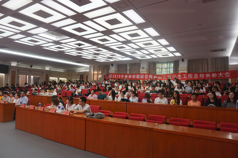 为迎接即将到来的期末考试,并总结各方面学生工作,不断完善提高共青团、学生会、青志协的工作水平,激励台湾女优 全体学生积极奋进勇往直前。台湾女优 于6月20日下午在文实模拟法庭召开了2018年春季学期诚信教育暨学生工作总结表彰大会。台湾女优 党委副书记樊江涛、团委书记李艳春、常务副书记李璐和郭建荣、李雨晴两位辅导员,与学生组织系统主要干部、各班主要负责人近300人一起参加了大会。