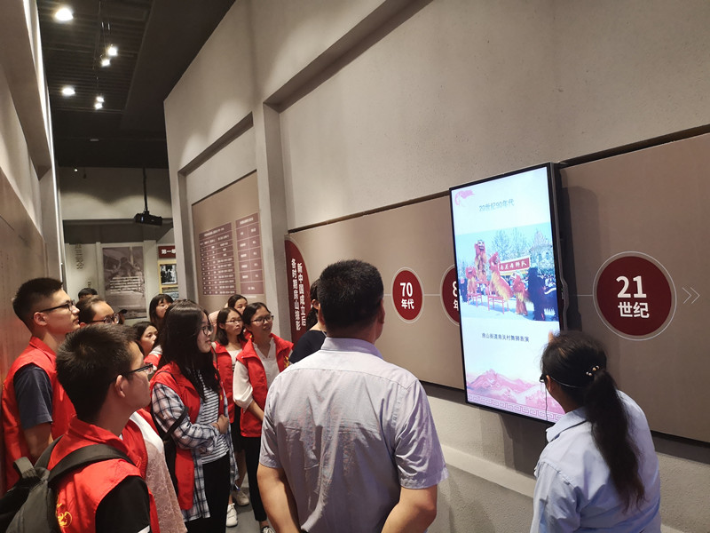 在讲解员的带领下,党员们参观了“没有共产党就没有新中国”纪念馆,展馆分为三个展厅,通过中国共产党创建和土地革命时期、全民族抗日战争时期、人民解放战争时期、社会主义革命建设时期、改革开放新时期和砥砺奋进的五年时期的层层递进,使用文字、视频、图片等多种形式,向大家生动地介绍了歌曲诞生背景、创作过程和历史影响。