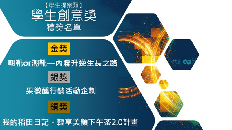 本次赛事从10月初启动,主题是企业、消费者和社会实现“共创、共享、共好”。获奖团队由跨台湾女优